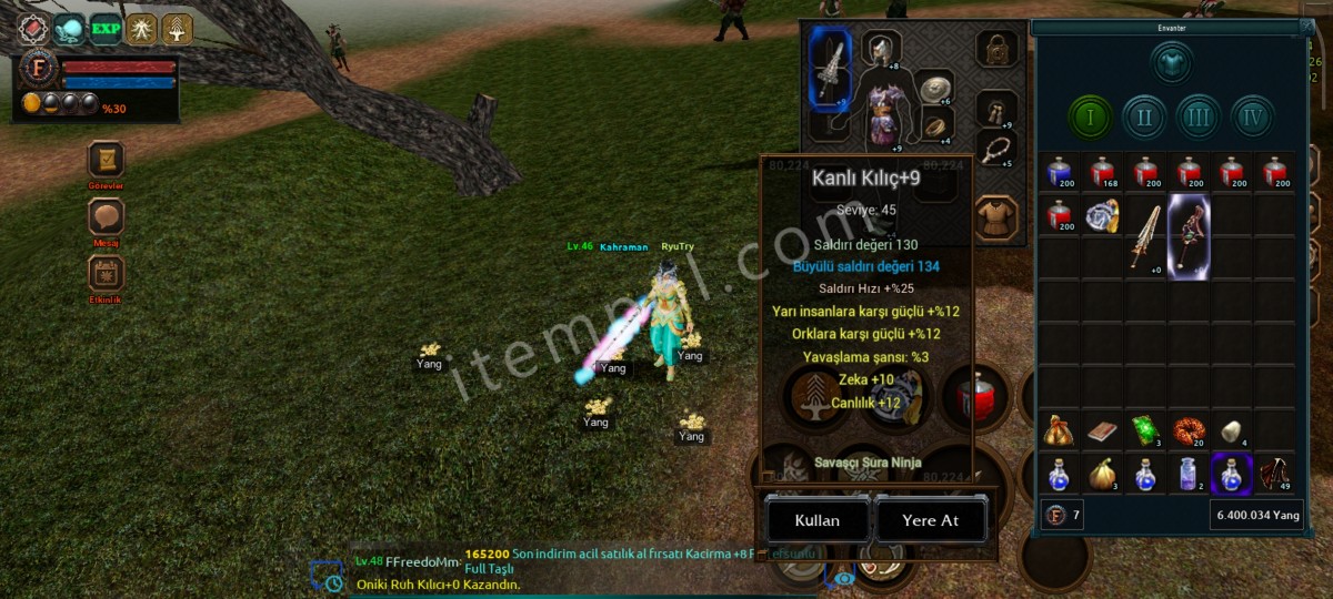 46 level full İTEMLİ üstünde 10m de nakit para var. İhtiyaçtan satılık. 9 EJDERHA PLAKA 9 KANLI KILIÇ 9 ABANOZ 8 DEMİR KASK 6 SYK AYAKKABI KOLYE BİLEZİK HEPSİ 5 EFSUNLU HAVA M4 ÖFKE M8. PAZARLIK VAR BİRAZ AMA