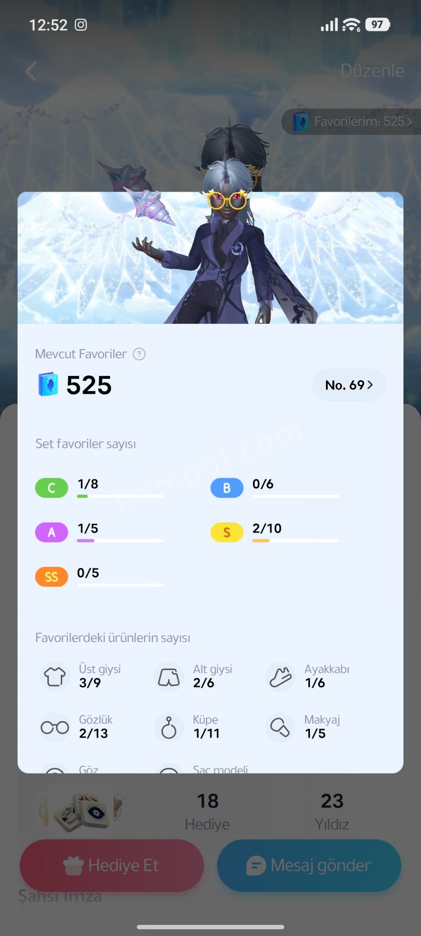 Hesap Kostüm hesabıdır Kristal ruh ve kristal ezgi seti kafa sandalye herşeyi fulldür Bir tanede A kostüm vardır hesapta hiç vip açılmamıştır kristal setlere 20k üstü bastım fiyatı gayet uygun tutuyorum ciddi alıcılar yazsın pazarlıksız.
