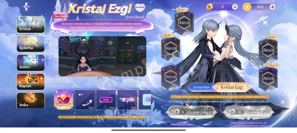 We play Kostüm hesabı Kristal Ruh ve Kristal Ezgi Full